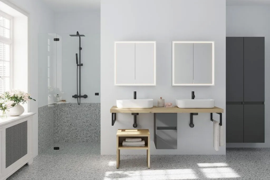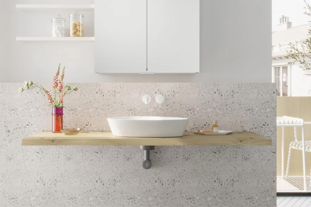 Der burgbad cleanFlow ist das perfekte Tool zur Realisierung komfortabler Konsolen-Waschtischanlagen. Farblich ist der aus hochwertigem, anthrazitfarbenem Kunststoff gefertigte Siphon auf die Innenräume unserer Waschtischunterschränke abgestimmt. Durch den hochliegenden Siphon und die geradlinige Führung der Rohre macht er aber auch unter offenen Konsolenlösungen eine gute Figur und lässt dort besonders viel Bewegungsspielraum. Damit bietet er sich auch für die Gestaltung minimalistischer und barrierefreier Konsolenlösungen an. Der Clou: Mit dem burgbad cleanFlow+ lassen sich nun erstmals auch Aufsatzwaschtische ohne Hahnlochbank und selbst dünnwandige Aufsatz-Waschtische und Sonderlösungen mit Schalen sicher stauen.