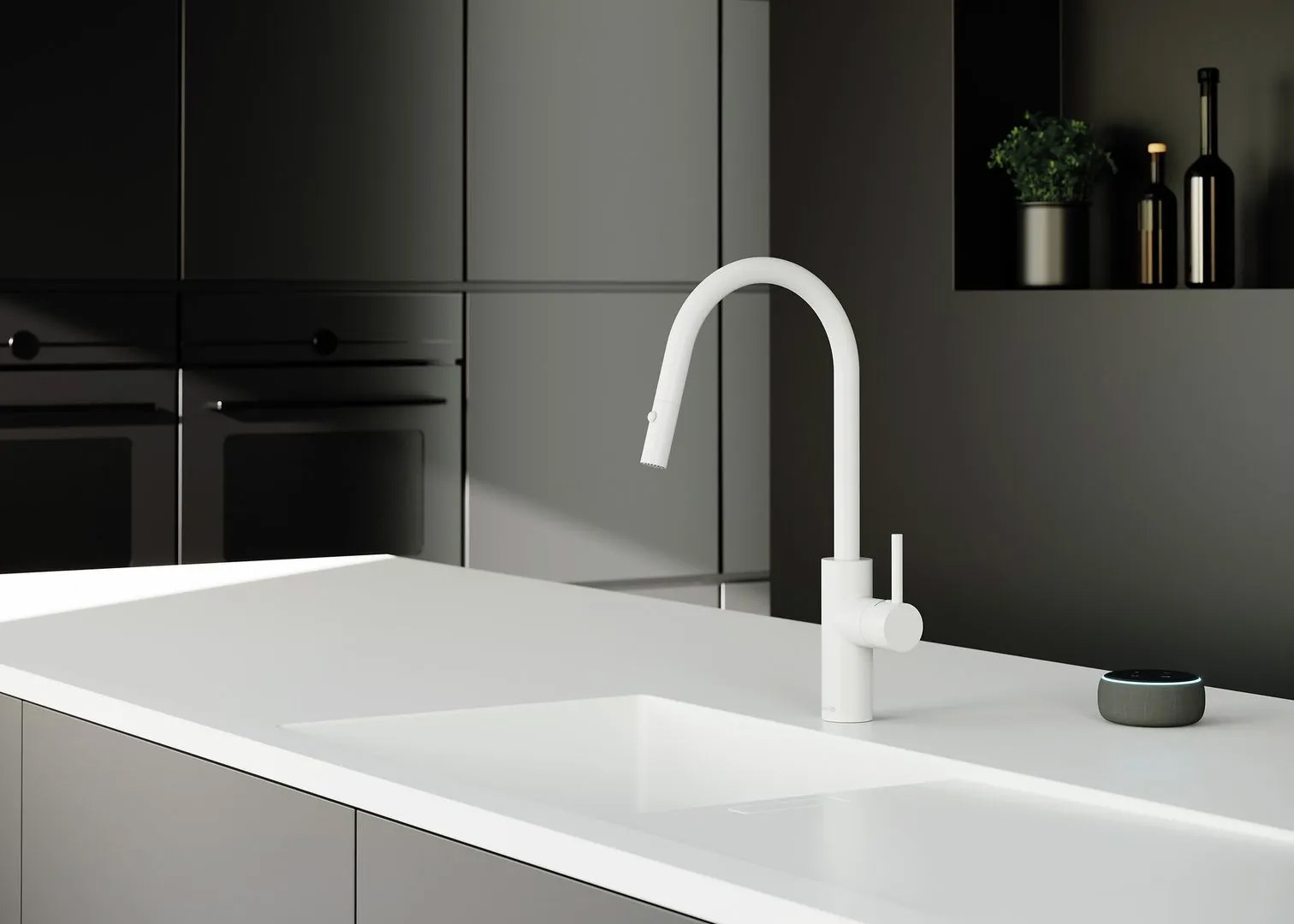 Die Küchenarmatur Kludi-E-GO Voice kombiniert Sprachsteuerung mit digitaler und mechanischer Bedienung